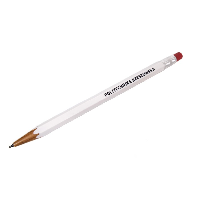 Automatyczny, plastikowy ołówek z gumką o klasycznym wyglądzie.
